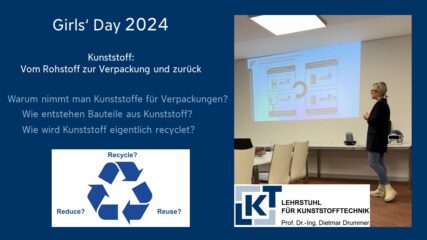 LKT took part in the event Girls’Day, hosted at FAU. By attending a talk about the recycling of polymers and two supporting experiments, the pupils gained first-hand insights into the significance of polymers and their applications in daily life.